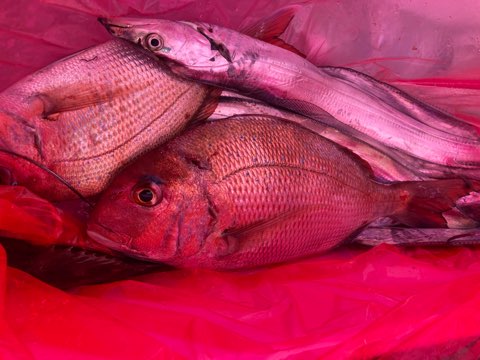 沖は風強く、 1日風裏ポイントでタイラバ真鯛&太刀魚狙い🫡
