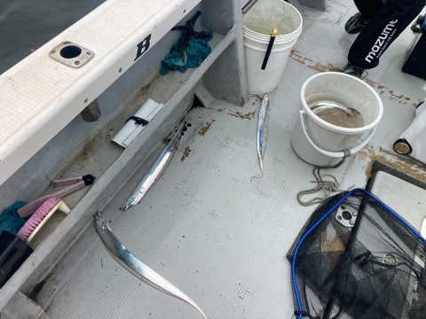 太刀魚は入れ食いタイムも結構続いて、多い人30本近く釣れたそうです(^_^)v