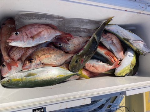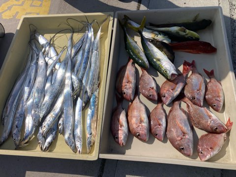 ハマチ、ツバスの青物は多い人2本!あとはアオハタ、オオモンハタ、チダイ、イラ、ガンゾー、ホウボウ、エソ、サバフグ沢山で大漁でしたね♪