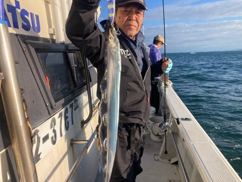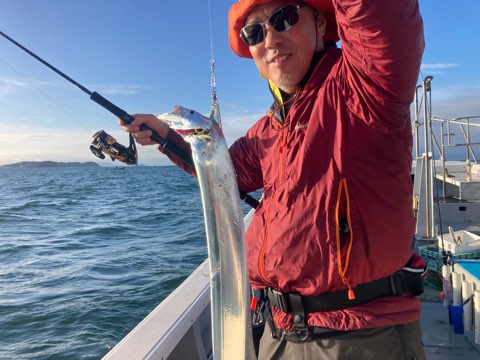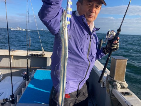 朝から強風、初乗船の初心者の方も居たので、無理せず1日波の少ない風裏ポイントで太刀魚と真鯛狙い🫡