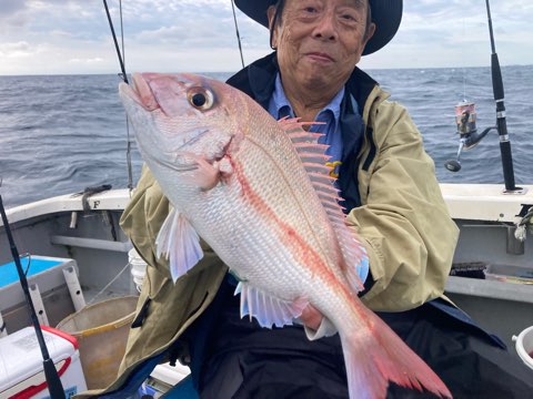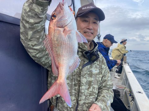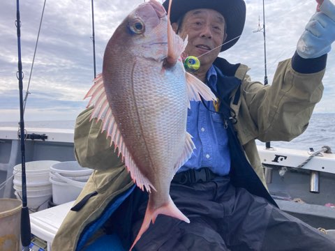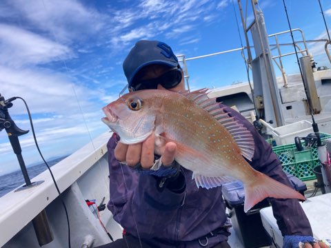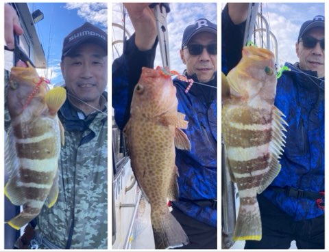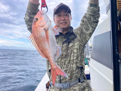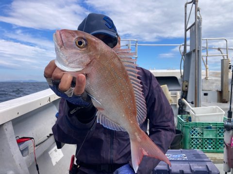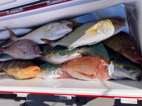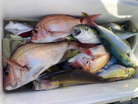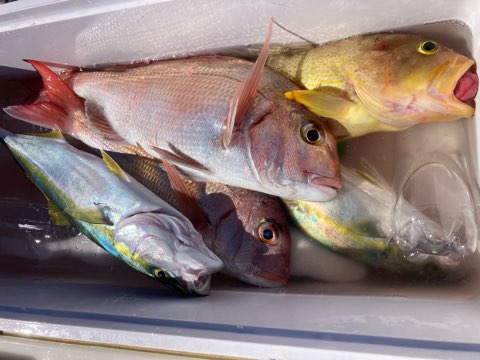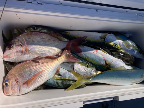 真鯛は50センチまで、40センチ前後と50〜40センチクラスのハタがポツポツ釣れて真鯛も青物も全員キャッチでボーズ無し✨