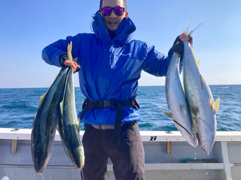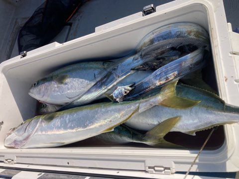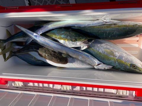 全員キャッチでボーズ無し✨ 釣果 2025.11.14 11月14日(金) 祐英丸本日も少数精鋭片舷ドテラで青物パターン掴んだ人はボコボコヒットでしたね✨少人数でも余裕で二桁キャッチ(^_^)v全員キャッチでボーズ無しでした♪後半少しだけ太刀魚やって全員キャッチ✨オカズは確保でした^ ^ありがとうございました✨ ⚠️急遽ですが、明日は3名空き出来ました✨挑戦者募集中♪