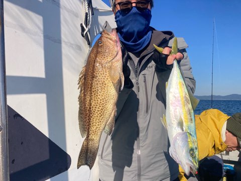 今日もなんとお土産確保✨ 釣果 2025.11.20 11月20日(木) 祐英丸今日は頑張って来ました🔥朝から鰤〜✨からのハマチハマチ‼️大物ジアイは弱かったですが、ハマチもポツポツっと♪後半、青物探しの旅に出てなんとか当たれてハマチとカンパチ拾い釣り✨ハマチ、カンパチで20本ほど釣れました😊あとは大きいオオモンハタ2匹、ヒラメ、シイラ2本、トラフグ3匹、サバフグ少々でした〜♪明日も頑張ります🔥ありがとうございました✨