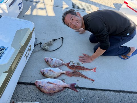 結果、真鯛45センチまで4枚!ハマチ5本、ホウボウ2匹タイヤキクン2匹で本日は終了でした〜🫡