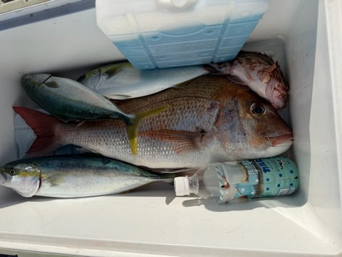 ハマチと真鯛はポツポツ釣れて、60センチUPくらいの真鯛も全部ジグで釣れました〜(^_^)v