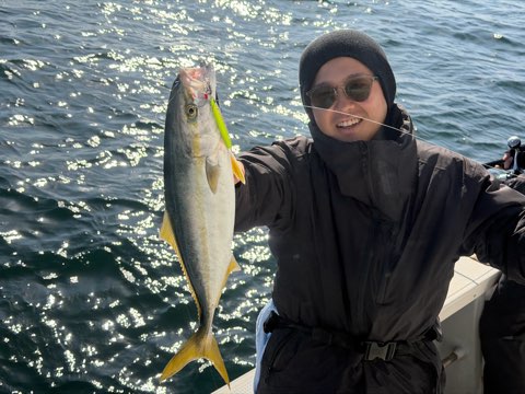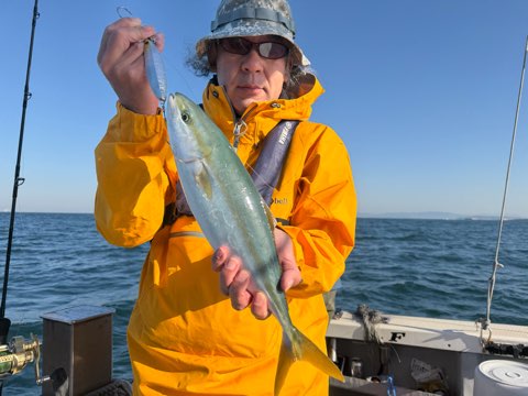 中盤から後半ようやく青物見つけて、ハマチキャッチ✨