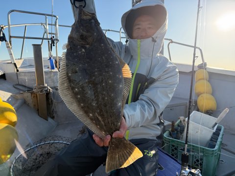 中盤60センチヒラメと30クラスの真鯛キャッチ♪