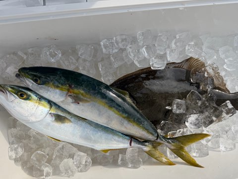 ラスト1日✨ 釣果 2025.12.30 12月30日(火) 祐英丸今日も頑張って来ました🫡朝から風弱く本日も比較的良い日でしたが、昨日の様には行かず…ワラサっぽい良さげなヒットも有りましたが、バレ😅ハマチ3本とヒラメ2枚とベイトのアジだけでした〜😓港に帰ったあと帰りに「鰤がヒットして水面近くまで来てバレました」って報告も有りました🥲今日は持って無かった日だったのでしょうがないですね💦ラスト1日!明日はガッツリハマれる様頑張りますね🔥ありがとうございました✨