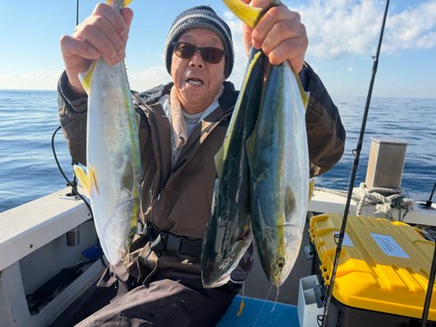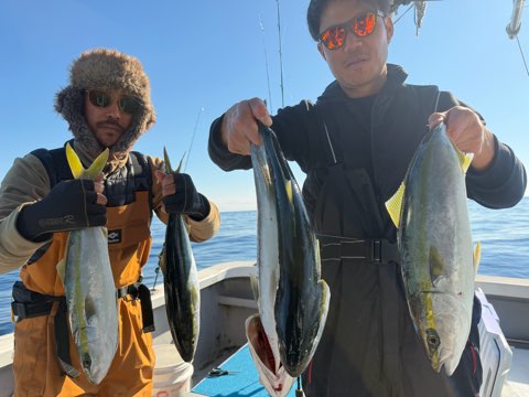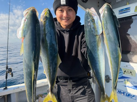 今日も鰤鰤✨ 釣果 2026.01.10 1月10日(土) 祐英丸本日ベタ凪のコンディション最高で頑張って来ました🔥今日も鰤狙いで8キロUPまで鰤2本ゲット出来ました(^-^)vそしてワラサも1本キャッチ♪ハマチはジアイにポツポツと17本キャッチ〜✨あとはマハタ、カサゴ、トラフグ5匹で終了でした〜‼️明日と明後日は爆風予報なんで、次天候良さそうなのは13日(火)ですね😅ちなみに13日は9名空きです🙇♂️次回も頑張りますね🫡ありがとうございました✨