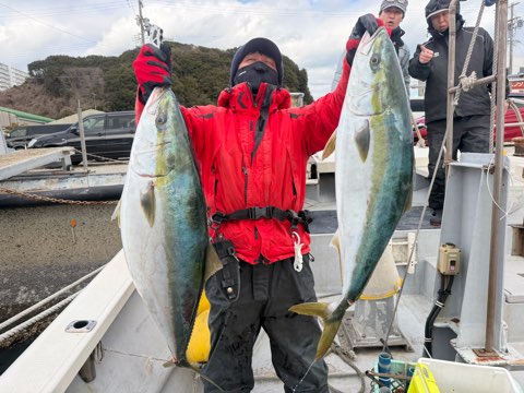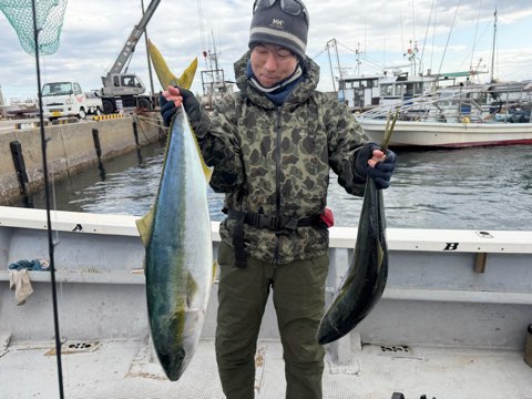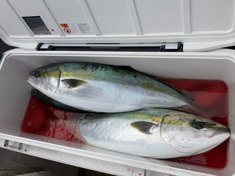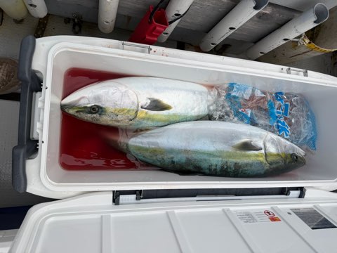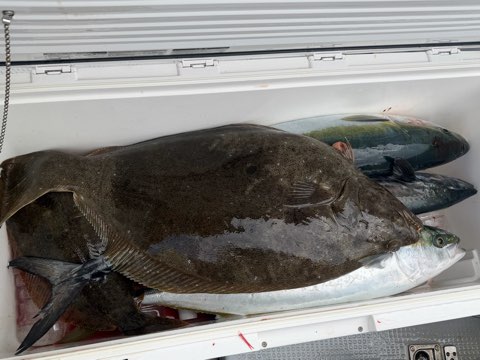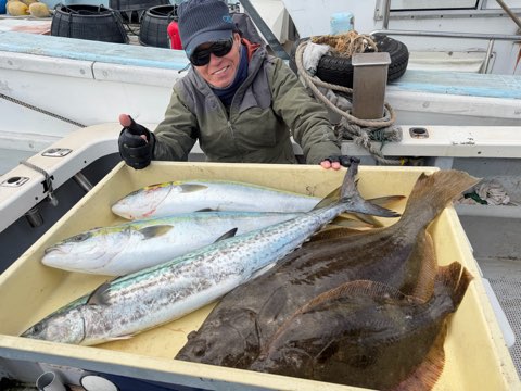 鰤鰤鰤〜✨ 釣果 2026.01.29 1月28日(水) 祐英丸本日も頑張って来ました^ ^人数少なめで広々と出来ましたね!今日も鰤鰤鰤〜!9.5キロまで鰤は7本キャッチでした✨トロサワラも 1本釣れましたが、サワラも脂がヤバイそうです🤣1名様だけ2ヒットで2本ともバレてしまって全員ヒットではあったんですが、残念ながら全員キャッチキャッチならずでした😅惜しかったですね🥲次回リベンジ頑張ります🫡ヒラメも2枚でデカいヒラメも釣れました〜♪明日も今のところ9名空きで募集中です♪ありがとうございました✨