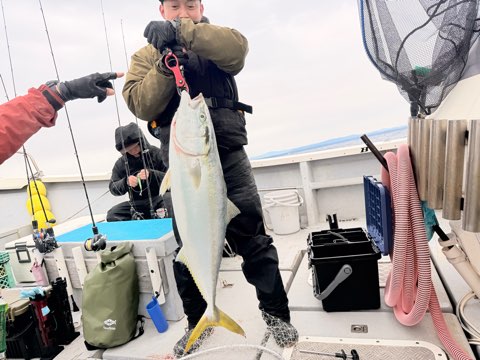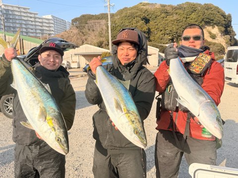 巨鰤10キロUP✨ 釣果 2026.02.07 2月7日(土) 祐英丸本日はお客様増えずで1日片舷ドテラで鰤一本勝負🔥朝メンバー全員に聞いたら、全員鰤狙いだったので、まるで日本海の船の様な1日でしたね(笑)中々簡単では無かったですが…細かくポイント回って4発ヒット‼️巨鰤10キロUPまで鰤3本キャッチでした〜✨活性低く数は出ませんでしたけど、デカイのばかりだったのはホント良かったです😂当たればデカイ宝クジ便でした‼️明日から爆風ですけど、10日(火)は天候良さそうですので、募集中です🫡ありがとうございました✨