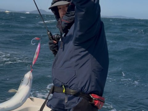 シンペイマンに呼んで貰って短時間で、お土産ハマチをポツポツと全員キャッチでボーズ無し(^^)v
