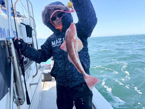 アチコチしてホウボウもポツリポツリ釣れたんで全員ボーズ無しでは終われました(^_^)v