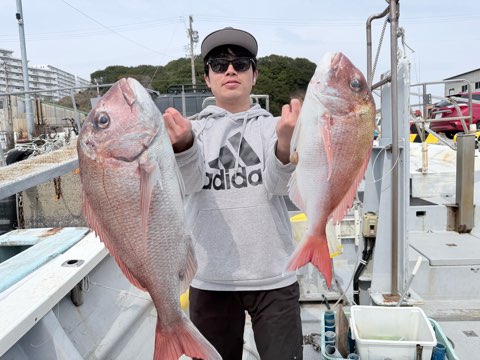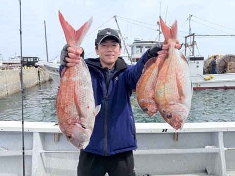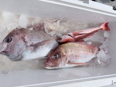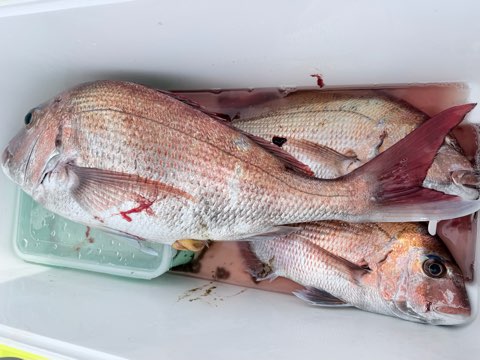 本格的に潮が動き出す今日は真鯛狙いで反応見つけて60UPを筆頭にバッチリ釣って頂きました🔥