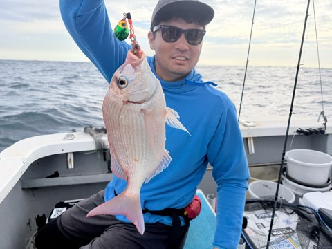 タイラバからスタートして真鯛40センチクラス頭に真鯛とチダイ、オオモンハタ、ホウボウ、トラフグ、ガンゾーに差は出たもののポツポツずっと釣れましたね(^_^)v